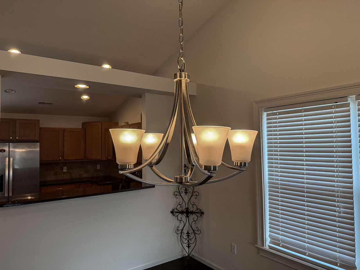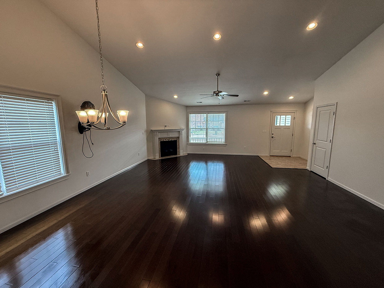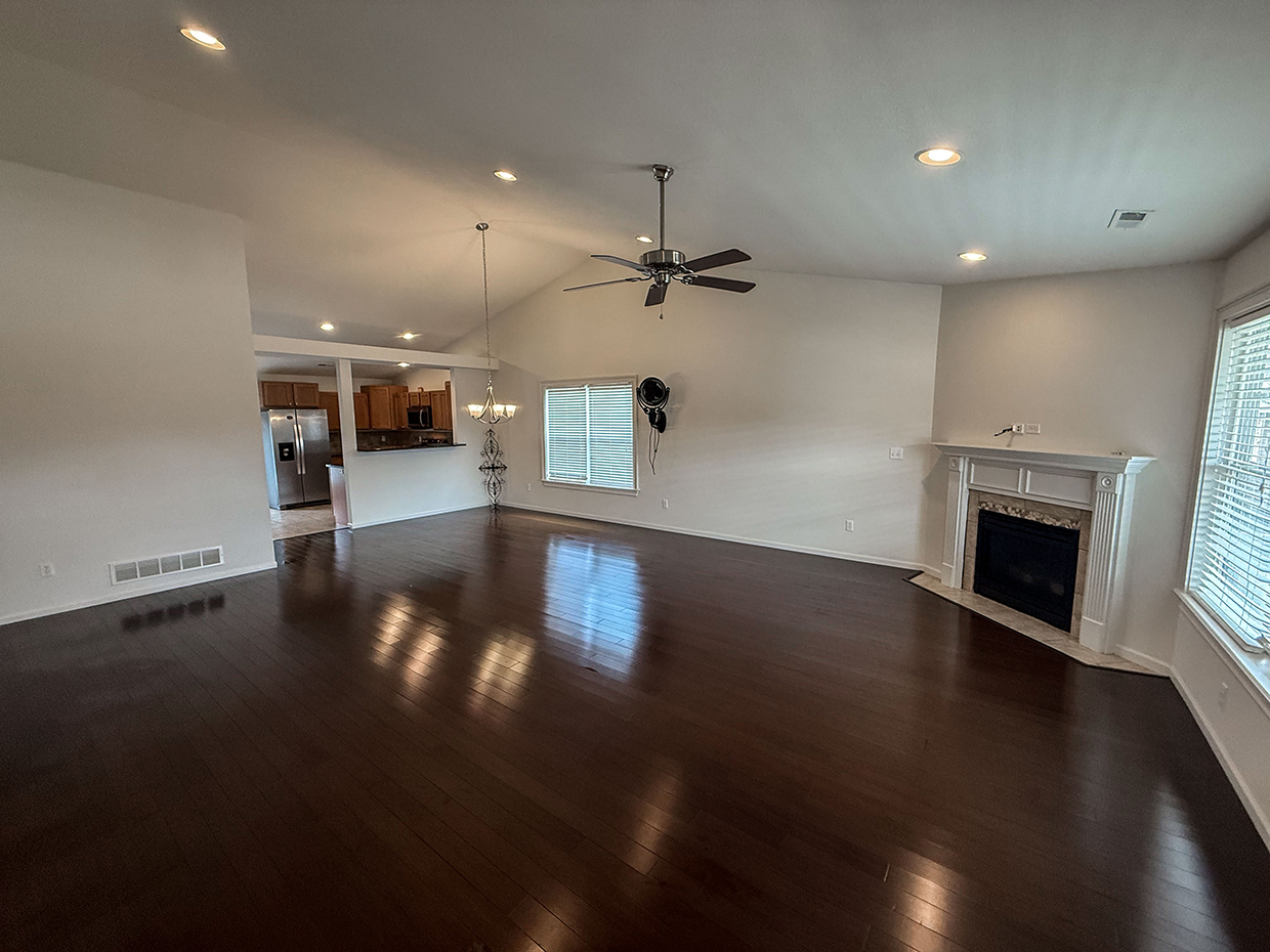 The main living area features an open layout connecting the living room, kitchen, and breakfast space. As a result, the home feels bright and spacious throughout the main living areas.